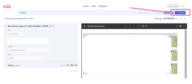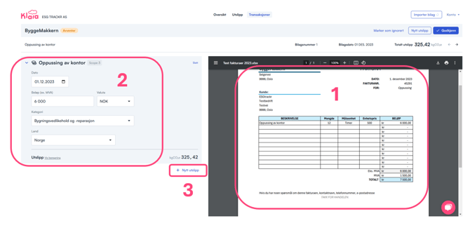 - Hvis det er utslipp i bilaget som Klara ikke har identifisert, kan du manuelt legge til utslipp.